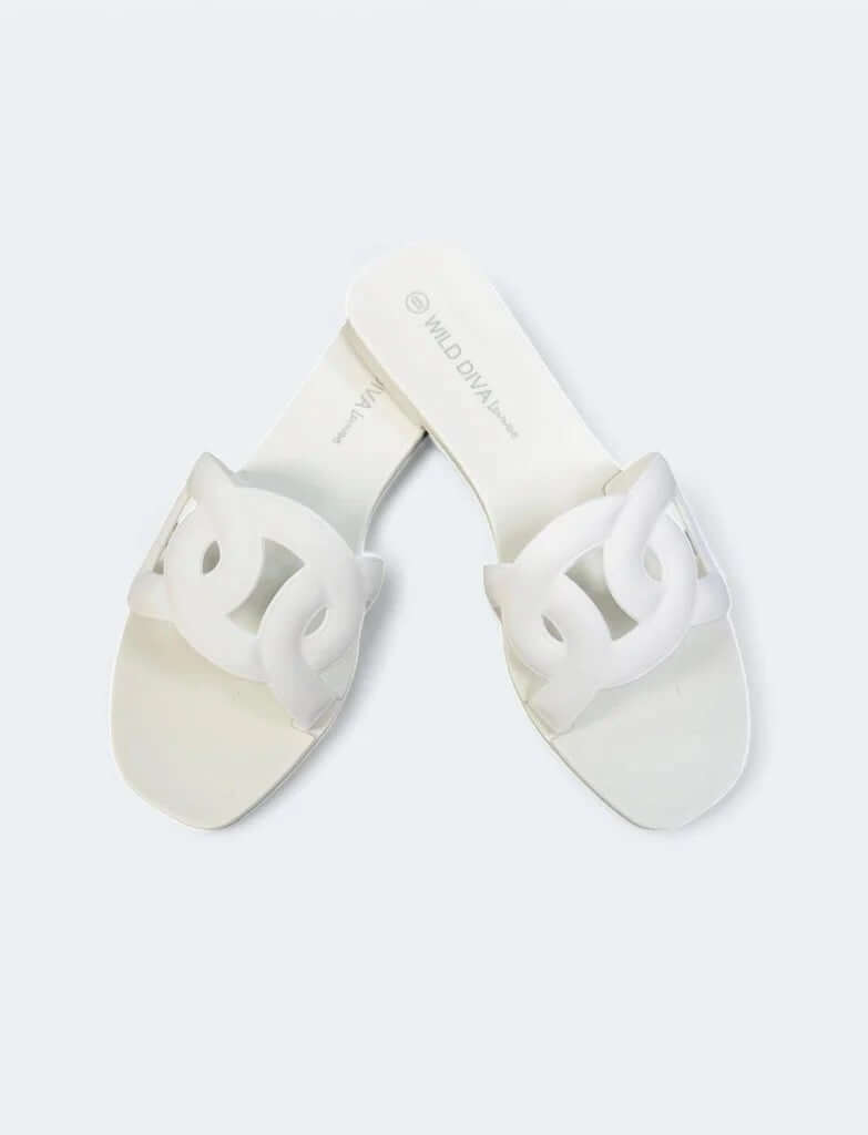 Jazzy Linking Loop Slide Sandals (white)