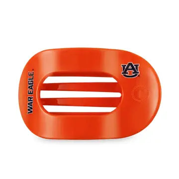 Lay flat and relax with the new TELETIES Auburn University, War Eagle! Large Flat Round Hair Clip in Orange and Navy. This hair clip is designed to allow you to lay back flat, do yoga, or sit comfortably in a seat with a headrest, and it is made with the same material that is nearly unbreakable.