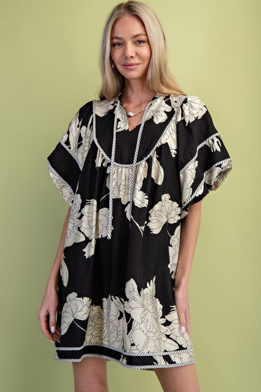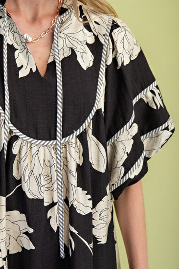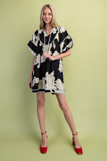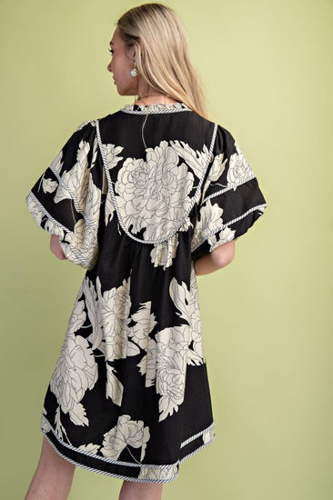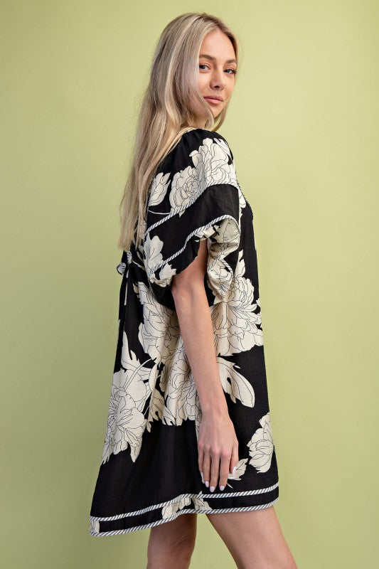 Floral Print Babydoll Dress with Short Puff Sleeves