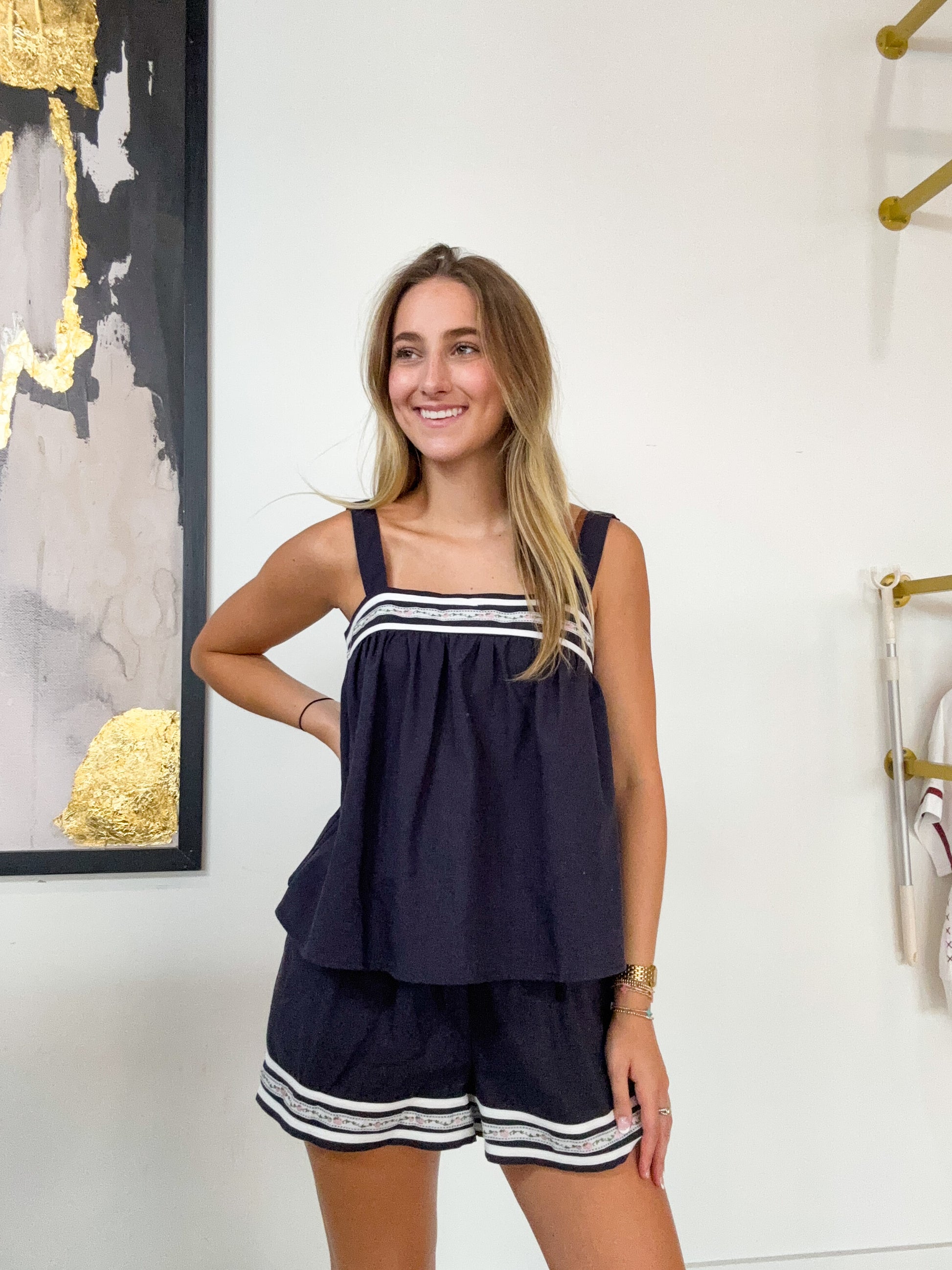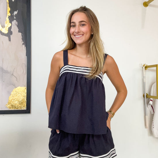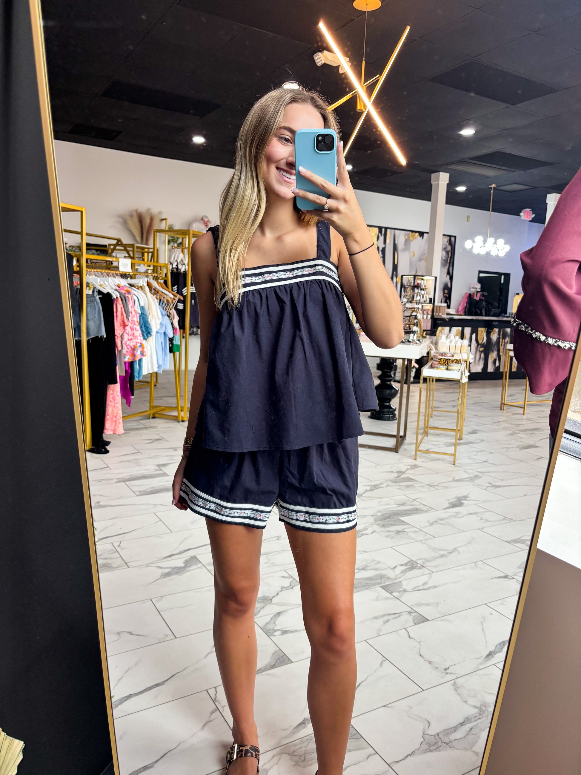 This top and shorts set features an intricate flower embroidery design. The model is wearing size S, and the measurements were taken from the same size. She is 5'9" tall and has measurements of 32-24-34. The fabric composition for this set includes 30% polyester, 30% linen, 30% rayon, and 10% cotton. These woven pieces offer a perfect fit, keeping you stylish and comfortable.