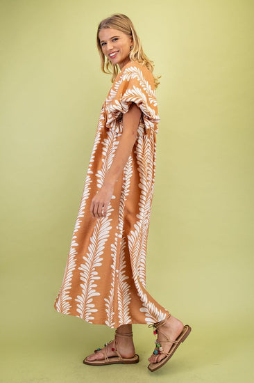 Printed Short Puff Sleeve Midi Dress