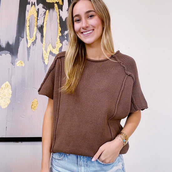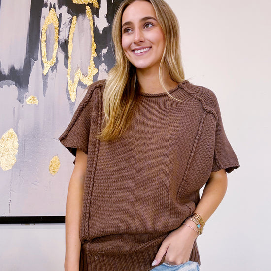 RELAXED FIT RIBBED SHORT SLEEVES SWEATER