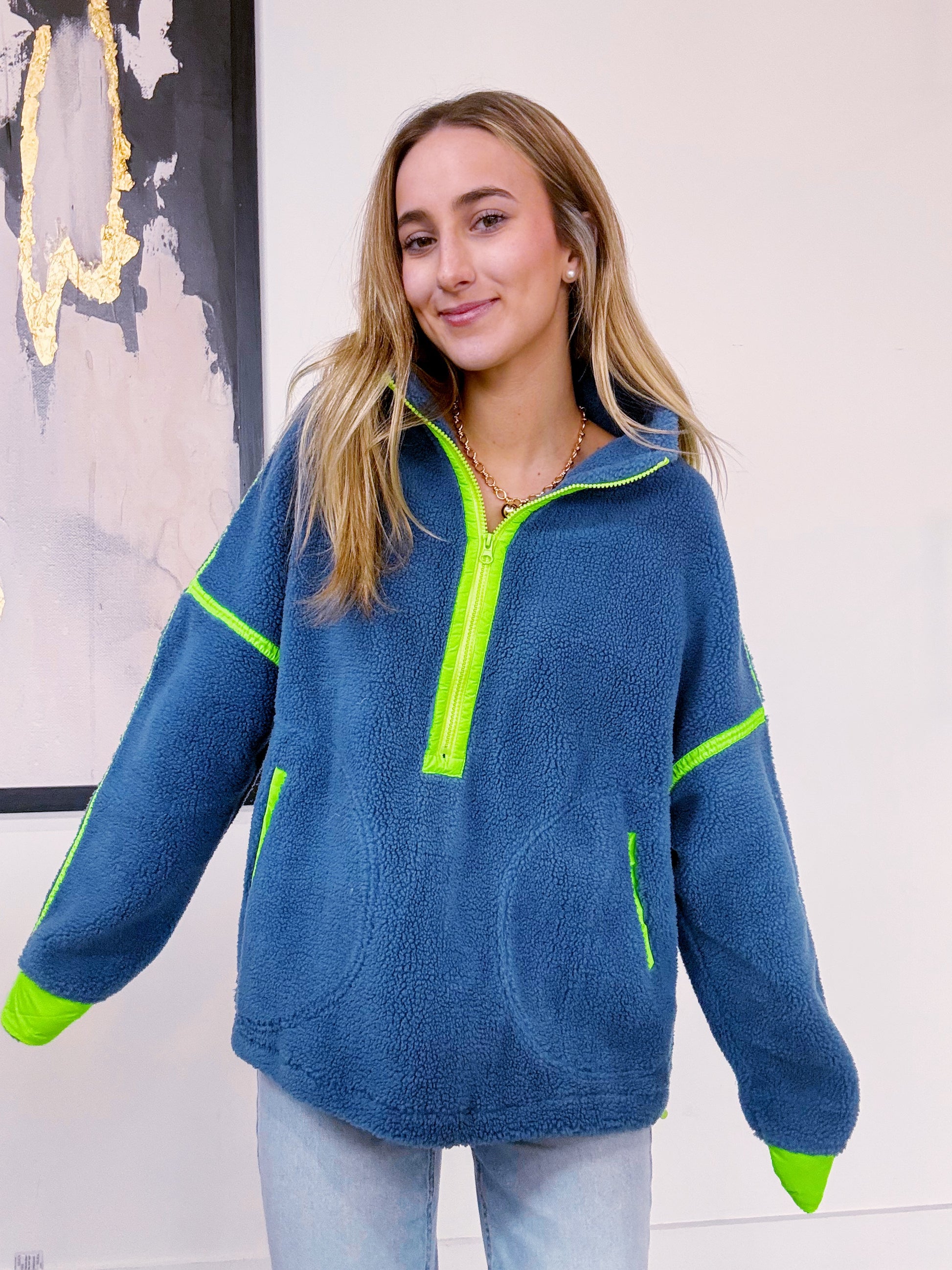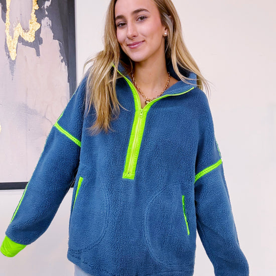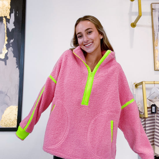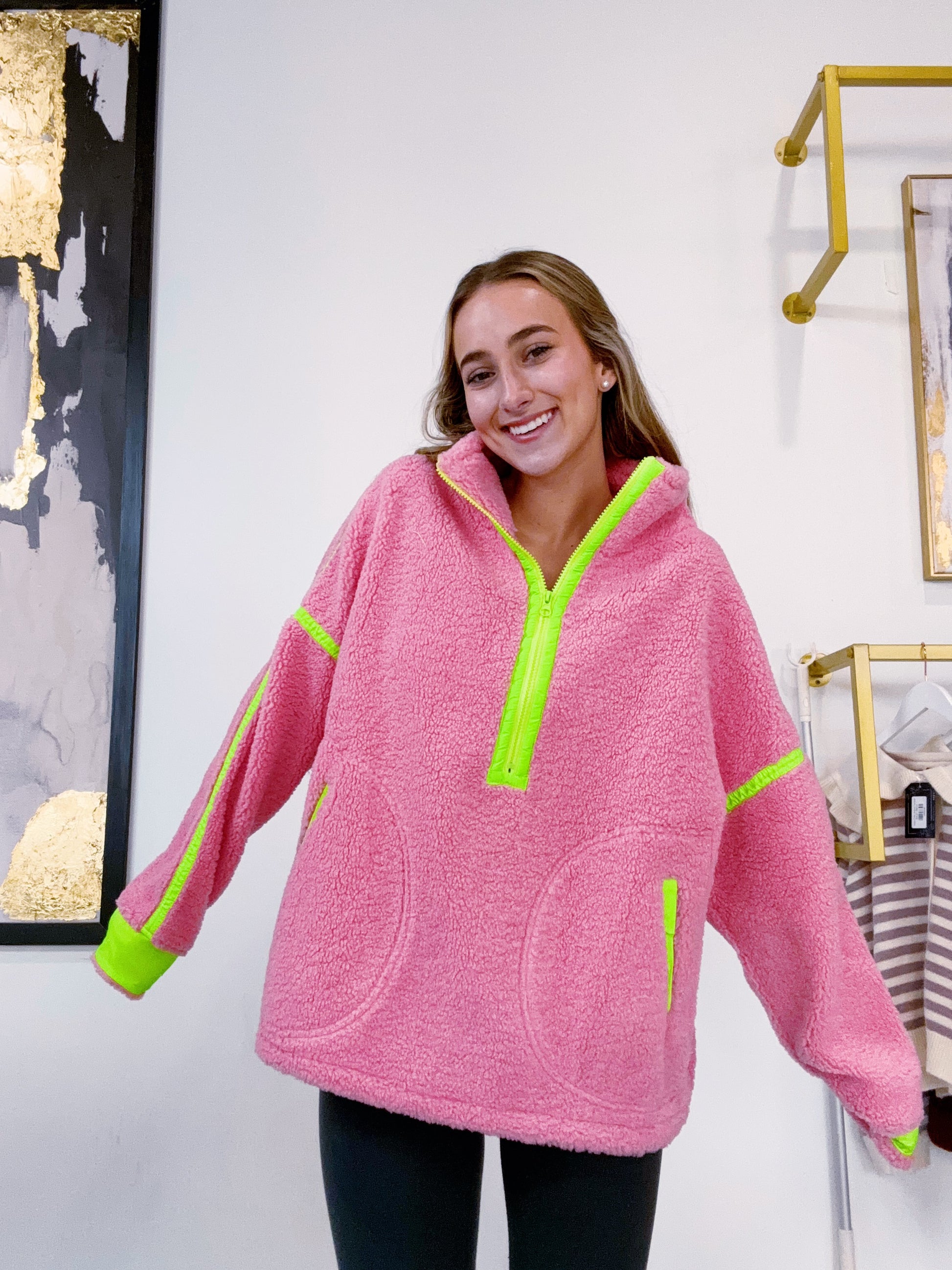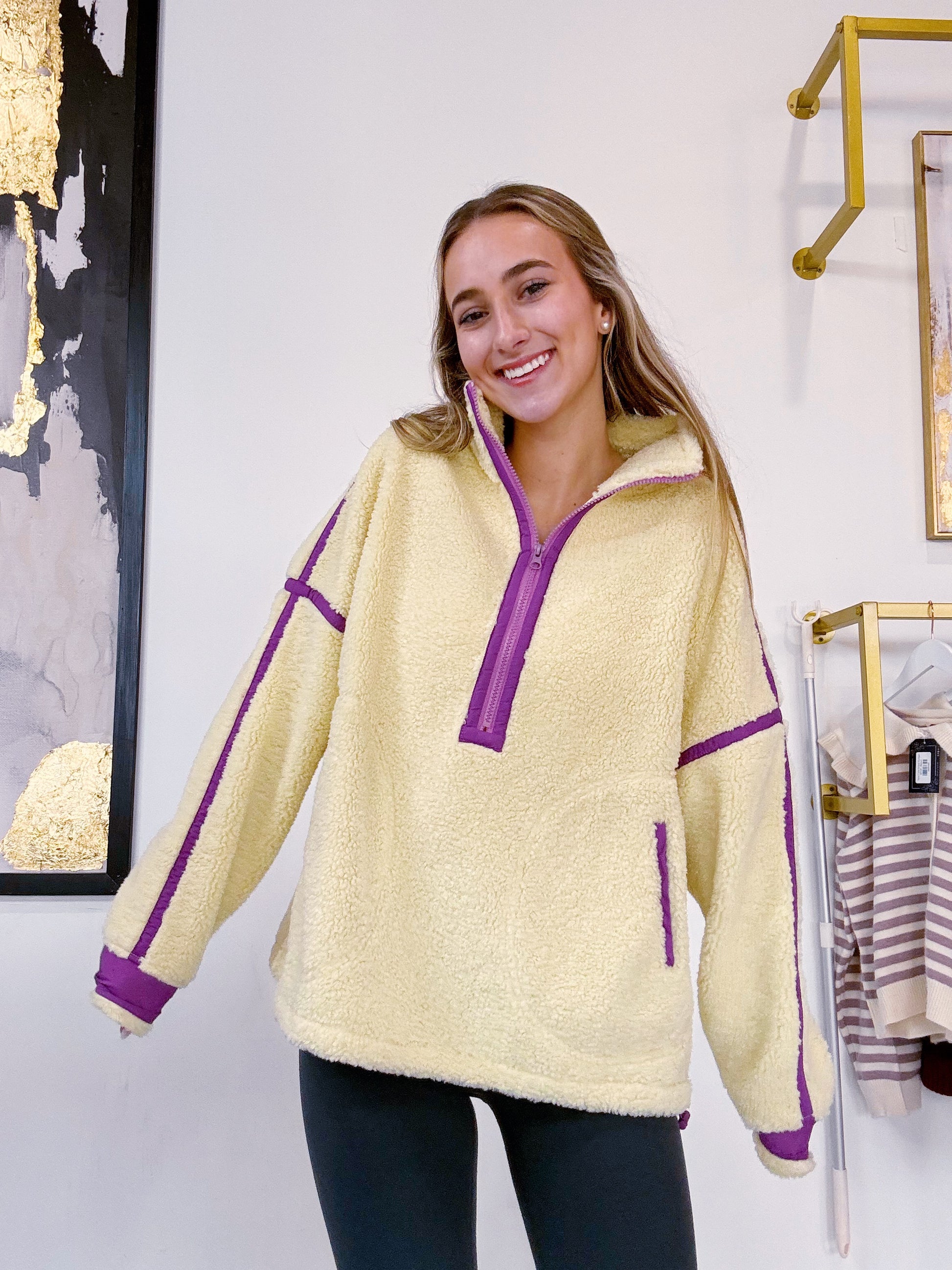 FLEECE ZIPPER HIDE POCKET PULLOVER