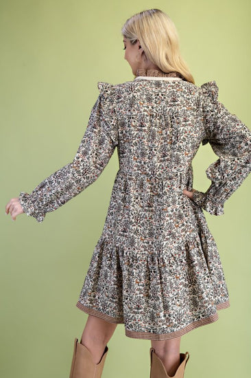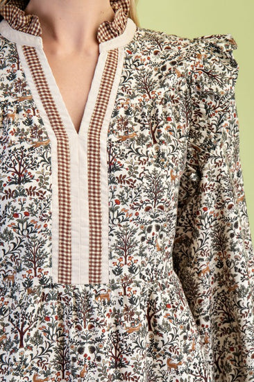 Vintage Woodland Print Tiered Dress