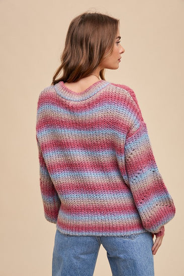 MOHAIR GRADIENT MULTI COLOR KNITTED SWEATER WITH POINTELLE ACCENTS AND EXAGGERATED