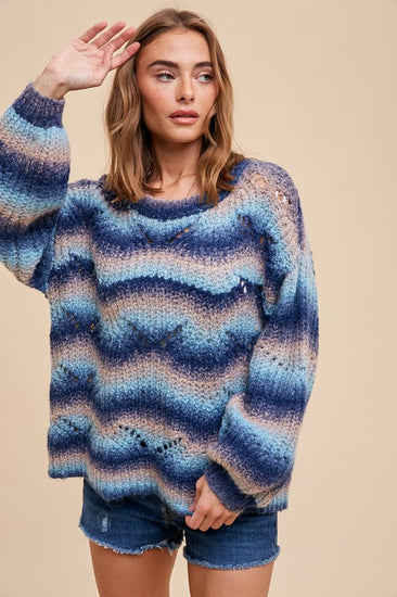 MOHAIR GRADIENT MULTI COLOR KNITTED SWEATER WITH POINTELLE ACCENTS AND EXAGGERATED